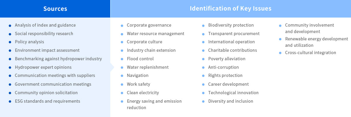 Based on two dimensions -“the impact upon CYPC’s development”and “concerns of stakeholders”, we have prioritized topics thathave a great influence and attract widespread attention, together with internal and external comments and recommendations.